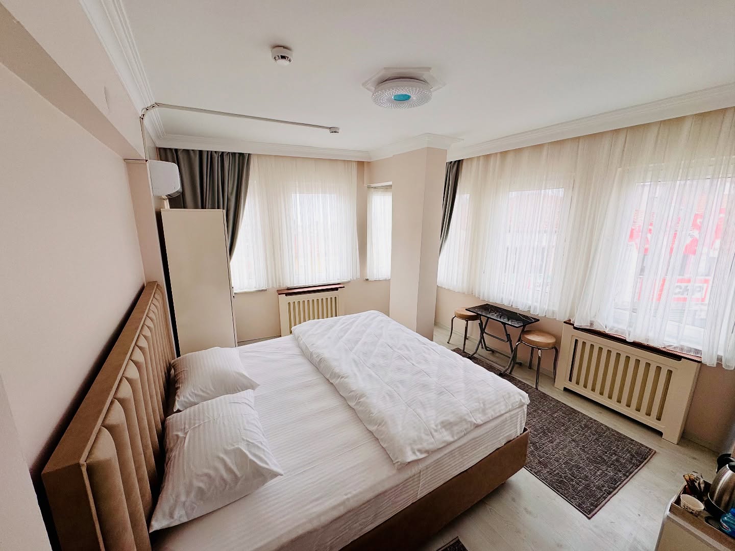 Odalarımız sade ve şık şekilde dizayn edilmiş olup, konforunuz için tüm temel ihtiyaçlar düşünülmüştür. Kahvaltı hizmetimiz bulunmamakla birlikte, çevremizdeki yürüyüş mesafesindeki birçok kafe ve restoran sayesinde güne keyifli bir başlangıç yapabilirsiniz.